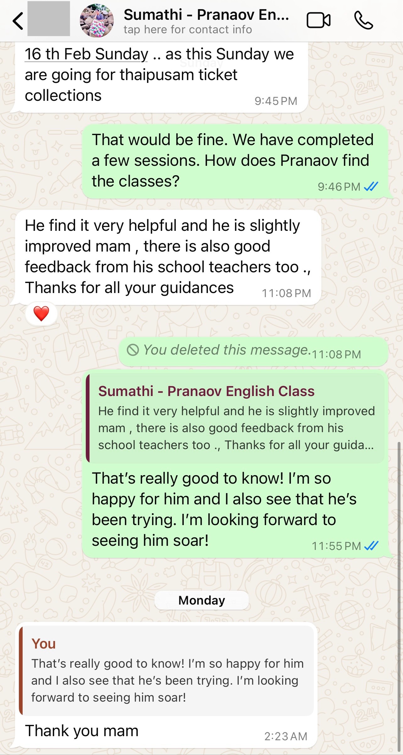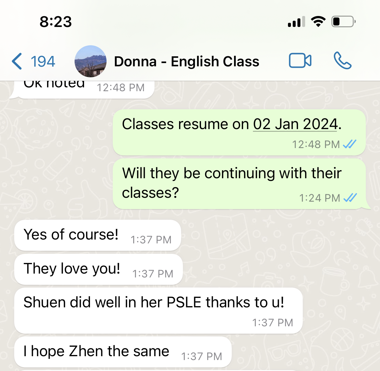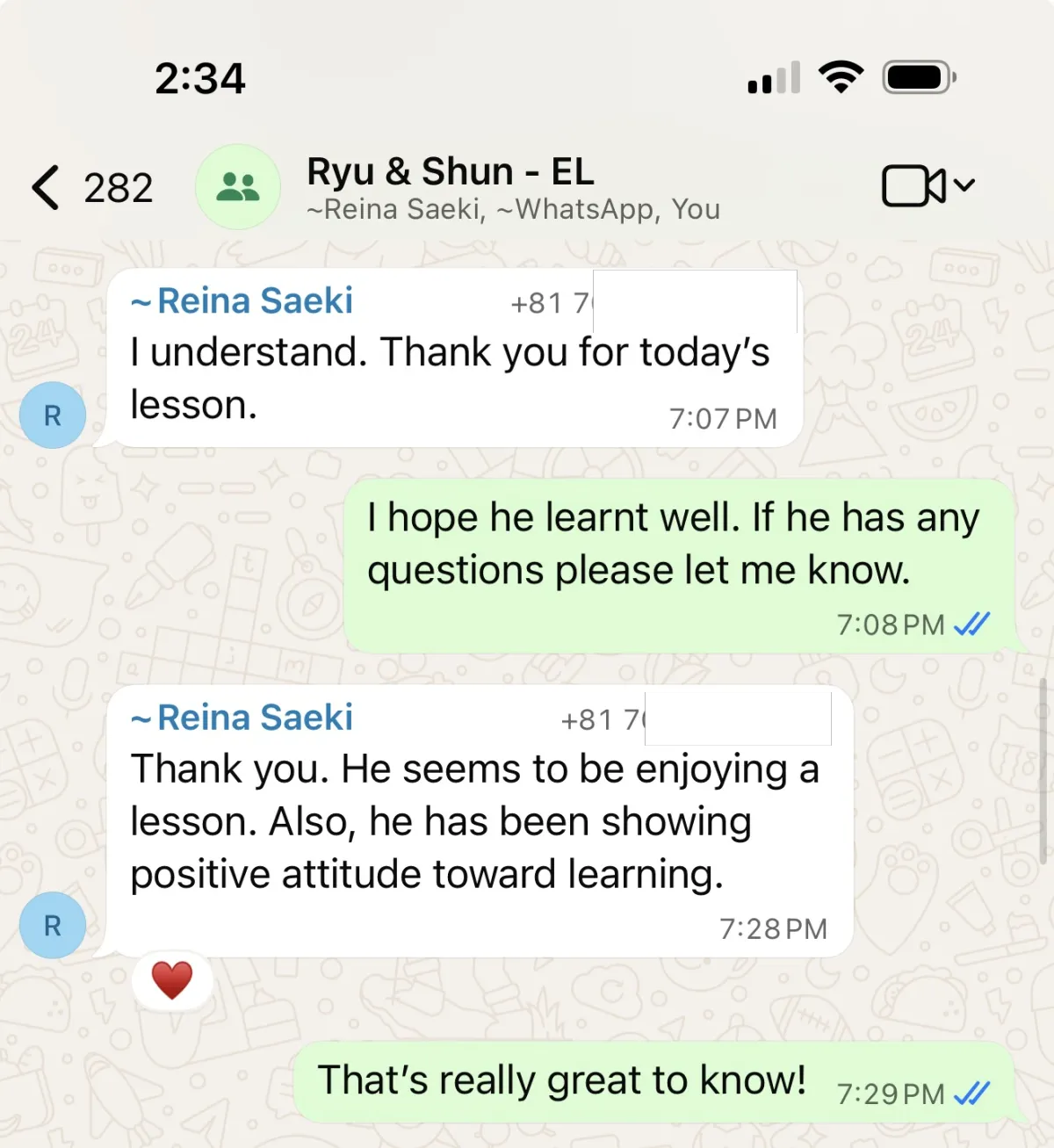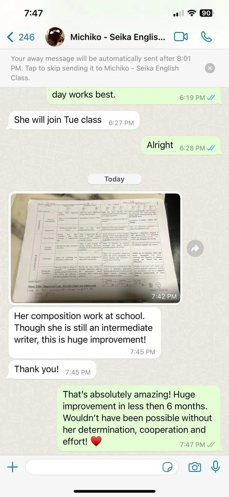 Printed materials, class recordings, homework review, and WhatsApp support to help your child improve even after class.